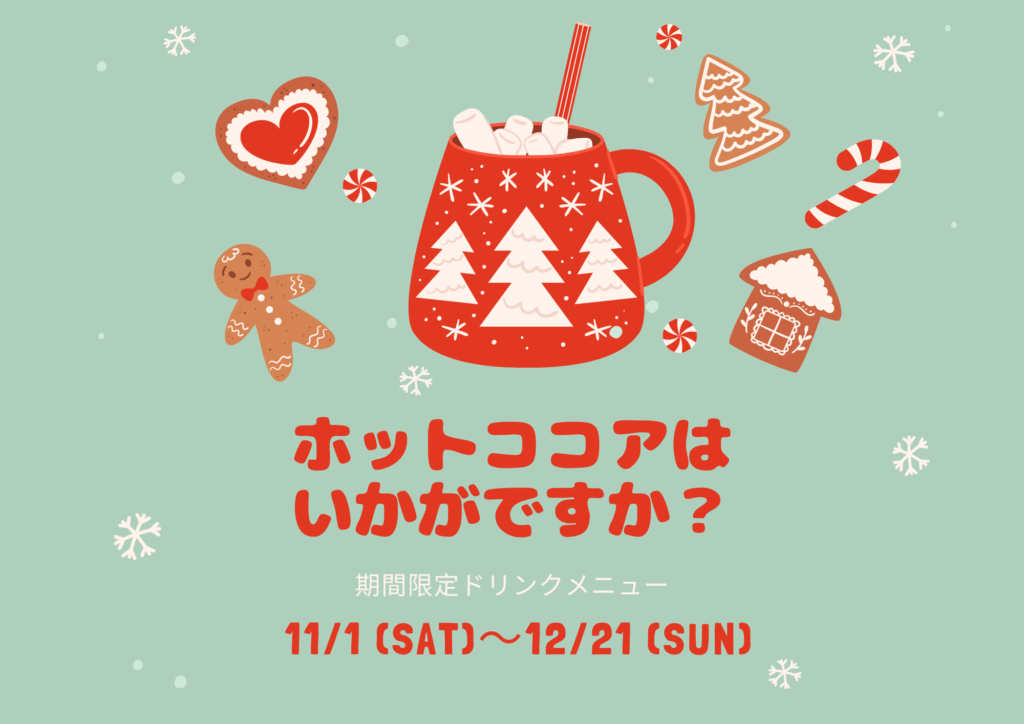 期間限定で、この時期だけのスペシャルドリンク ホットココアを