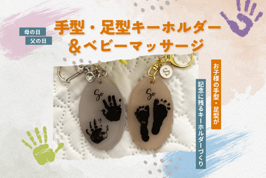 「母の日・父の日 手型足型キーホルダー&ベビーマッサージ」を開催します。